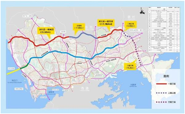建成通車后不僅緩解機(jī)荷高速、南坪快速等過境通道的交通壓力,還改善了寶安、光明、龍華、龍崗等片區(qū)的交通便捷度。
