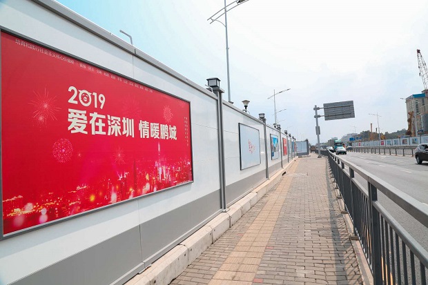 6、安裝好圍擋,就可安排下空的50厘米以上的空間,可以用來做砌磚基礎(chǔ),增強(qiáng)穩(wěn)定性、牢固性。由于工程圍擋厚度、顏色美觀度能適應(yīng)各類客戶,使用時(shí),可以在圍欄上設(shè)置施工公告,或者通過招標(biāo)引入廣告公司設(shè)置公益廣告和商業(yè)廣告,充分利用和提高空間價(jià)值。
