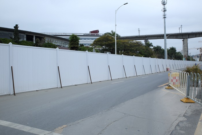 5、PVC圍擋使用者應(yīng)定期檢查,如有開裂、沉降、傾斜等危險情況,應(yīng)立即采取相應(yīng)的加固措施。廣告牌不得靠近輕質(zhì)圍擋板(如PVC圍擋)豎立。如確需搭設(shè),應(yīng)力系應(yīng)獨立設(shè)計計算。